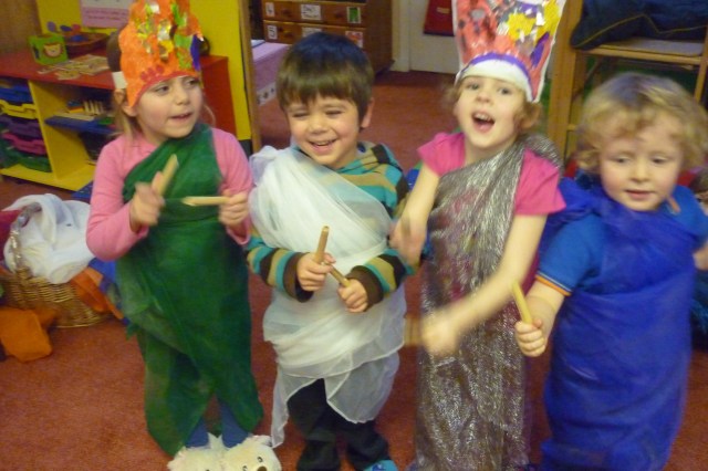 Yes, today we celebrated Diwali in nursery. We have been very busy learning the Diwali story, making crowns, dancing with sticks and we also used the internet to find out more. This photographs is when we were dancing with the sticks with our crowns and saris.