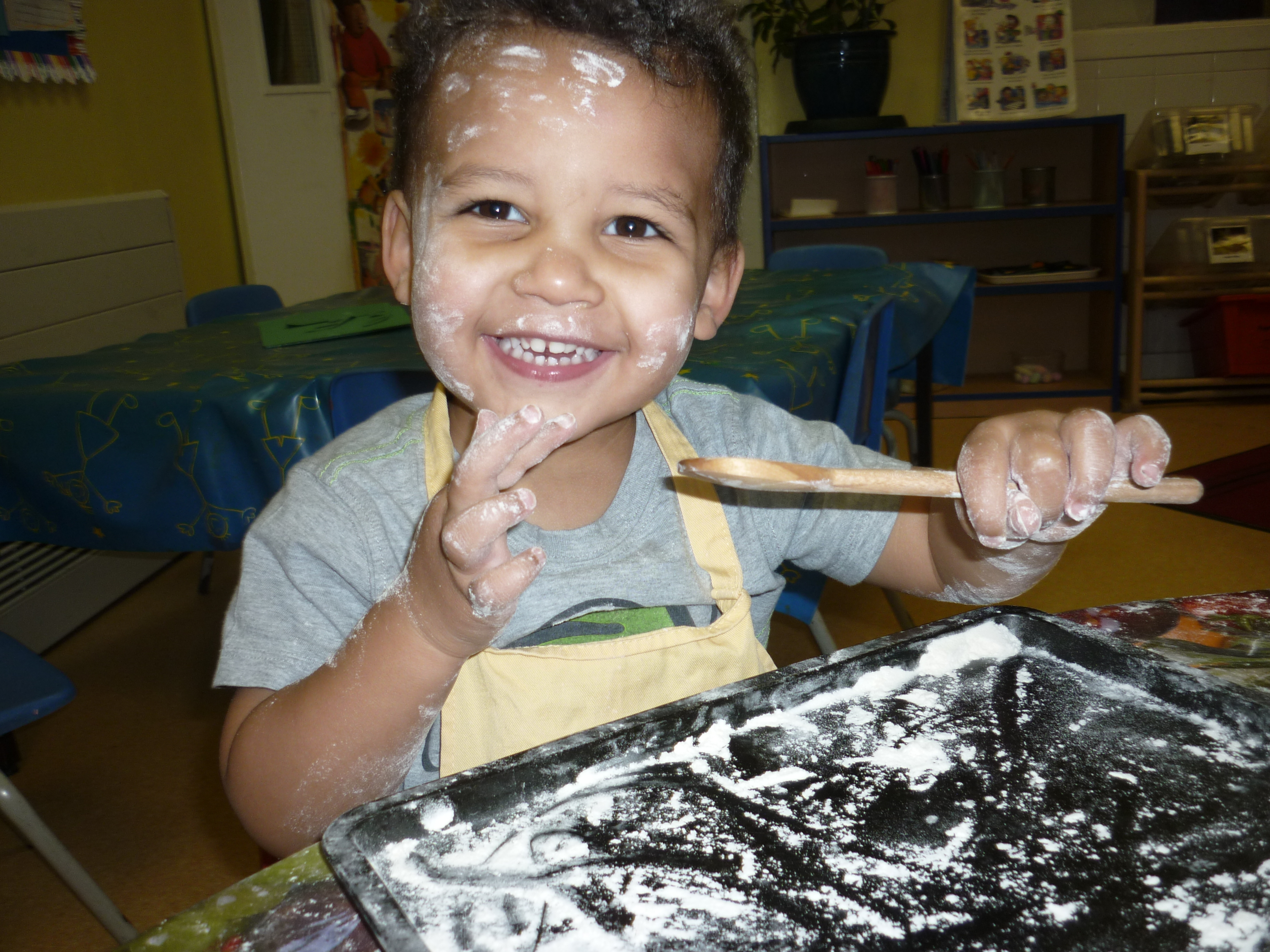 This week in nursery we are having a Scottish ~Week to help us celebrate St. Andrews Day on Friday. So far we have searched the internet and found some good demonstrations of highland dancing which we then copied. We have also learned about the legend of the Loch Ness Monster (we liked that) and we have made orange finger shortbread (which was yummy). This is Marcello having fun exploring the flour!!