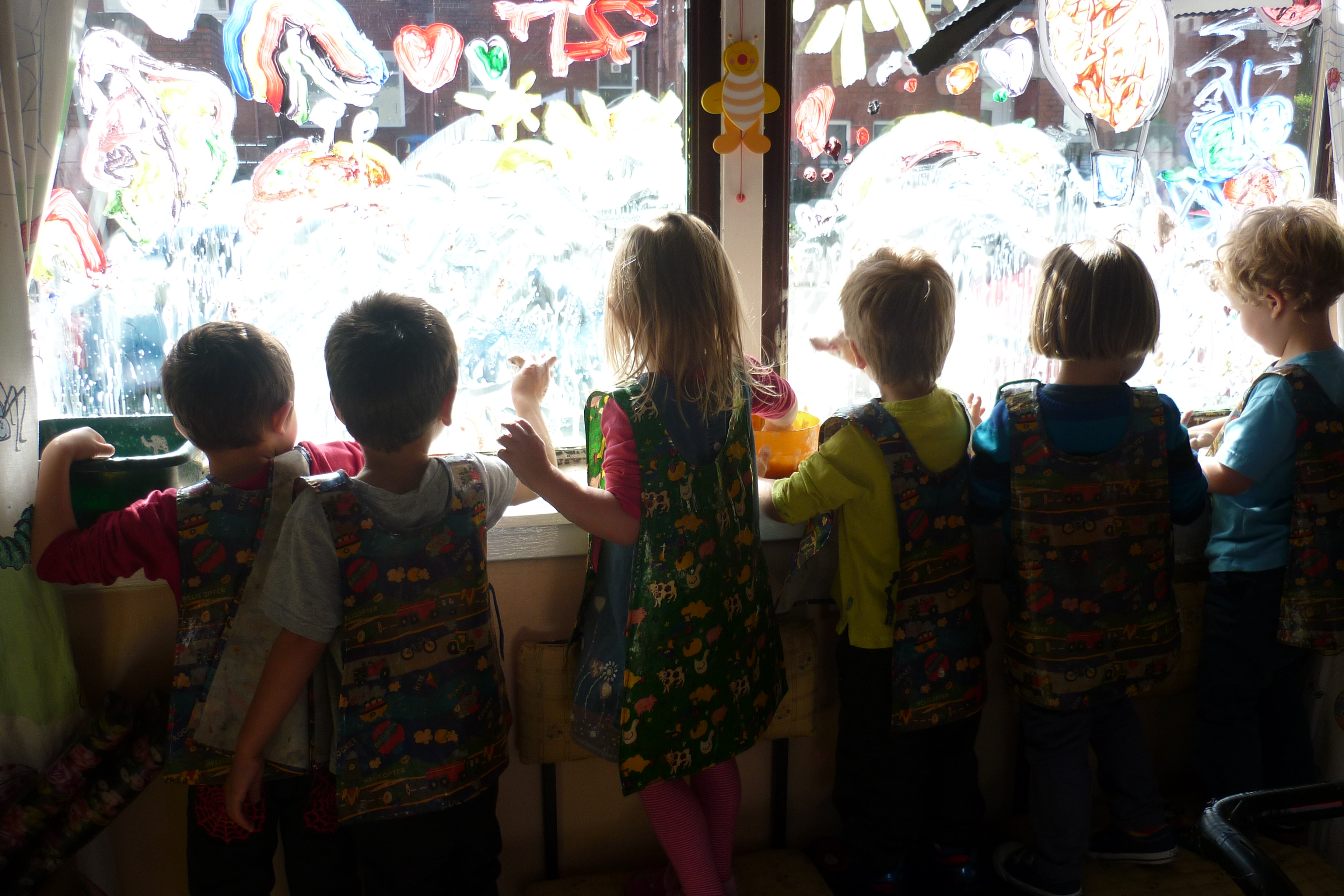 This is us helping to wash the windows a few weeks ago. We are planning what to decorate them with for our Hallowe’en celebrations!!