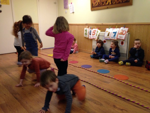 This is a game from our daily exercise programme. It’s called Bouncing and gives the children opportunities to practice jumping by using spacial awareness and bodily coordination. Some of the children are skilled at jumping.