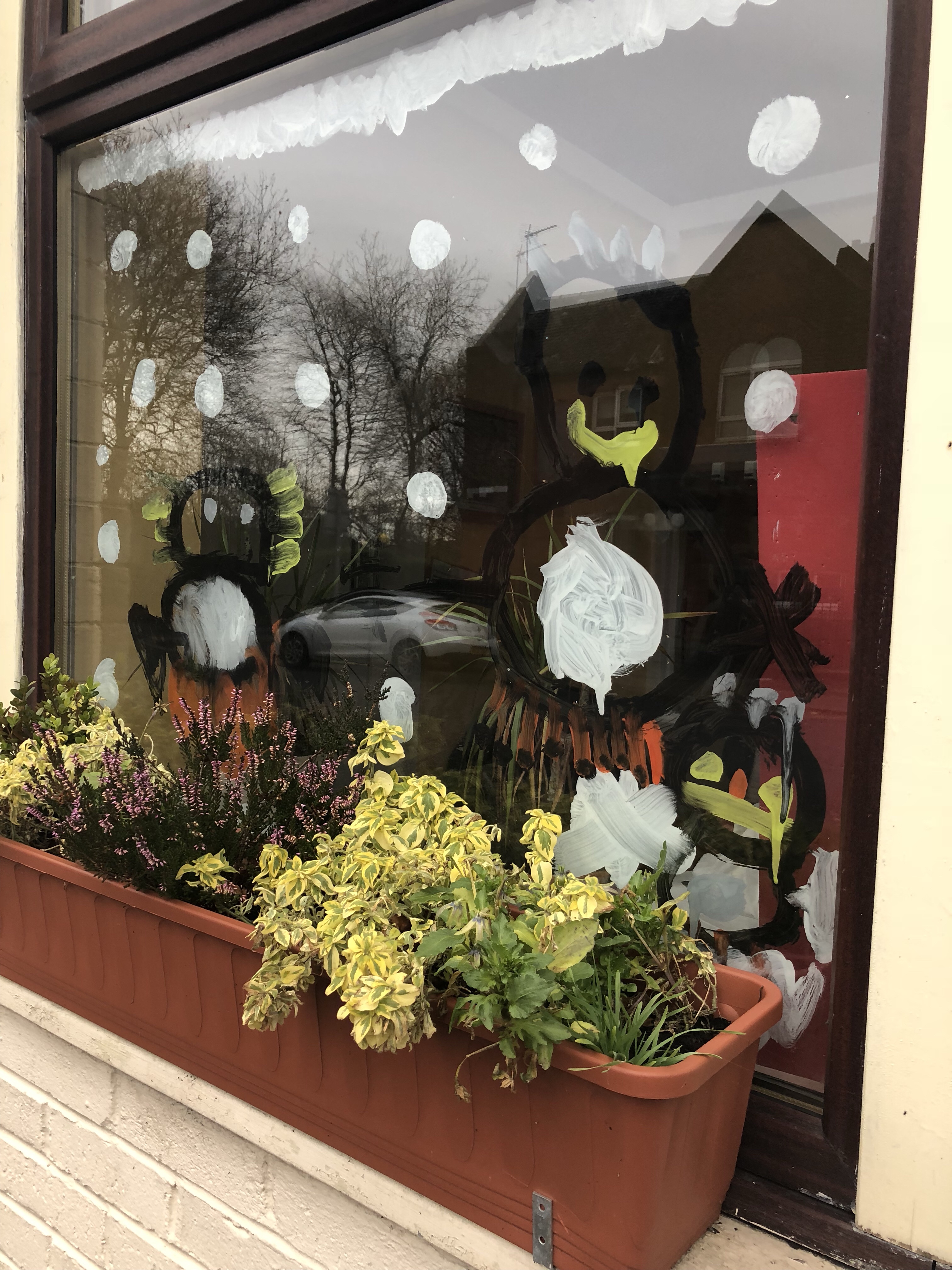 So we decorated our windows this morning.