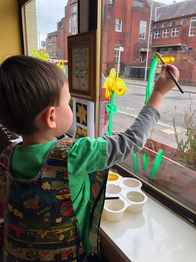 We all like flowers here in nursery. We have seen the daffodils growing outside and we are learning about change.