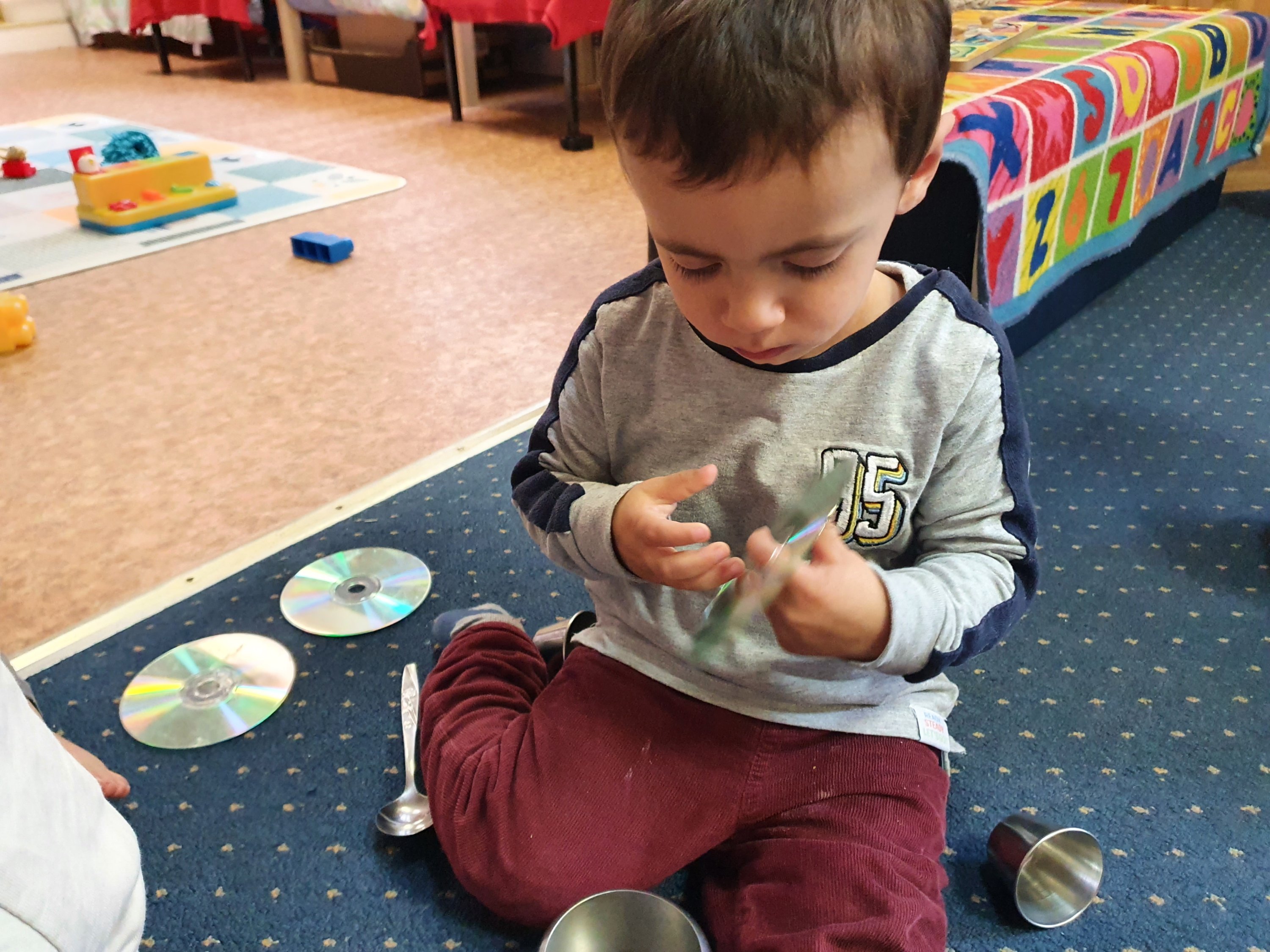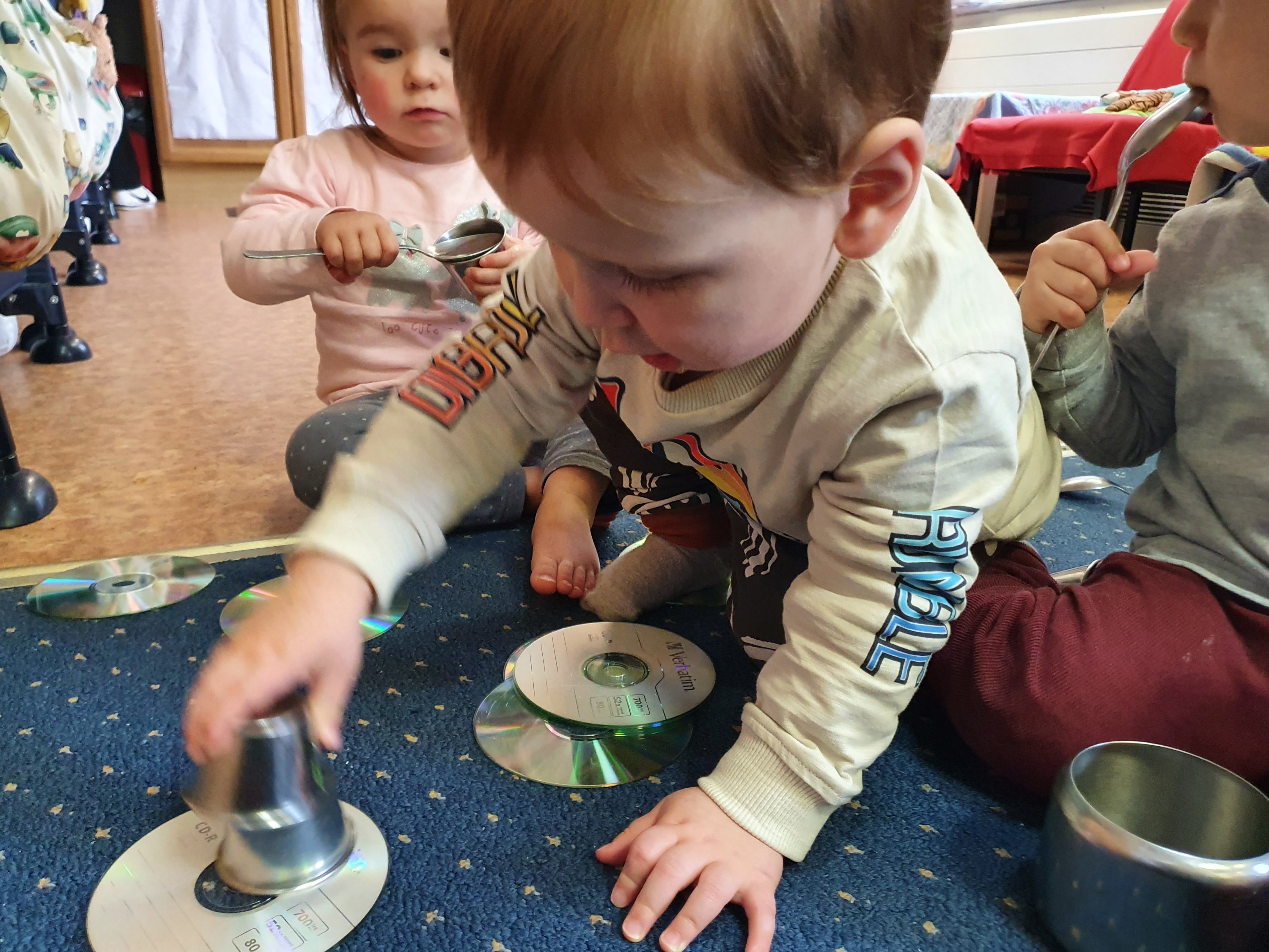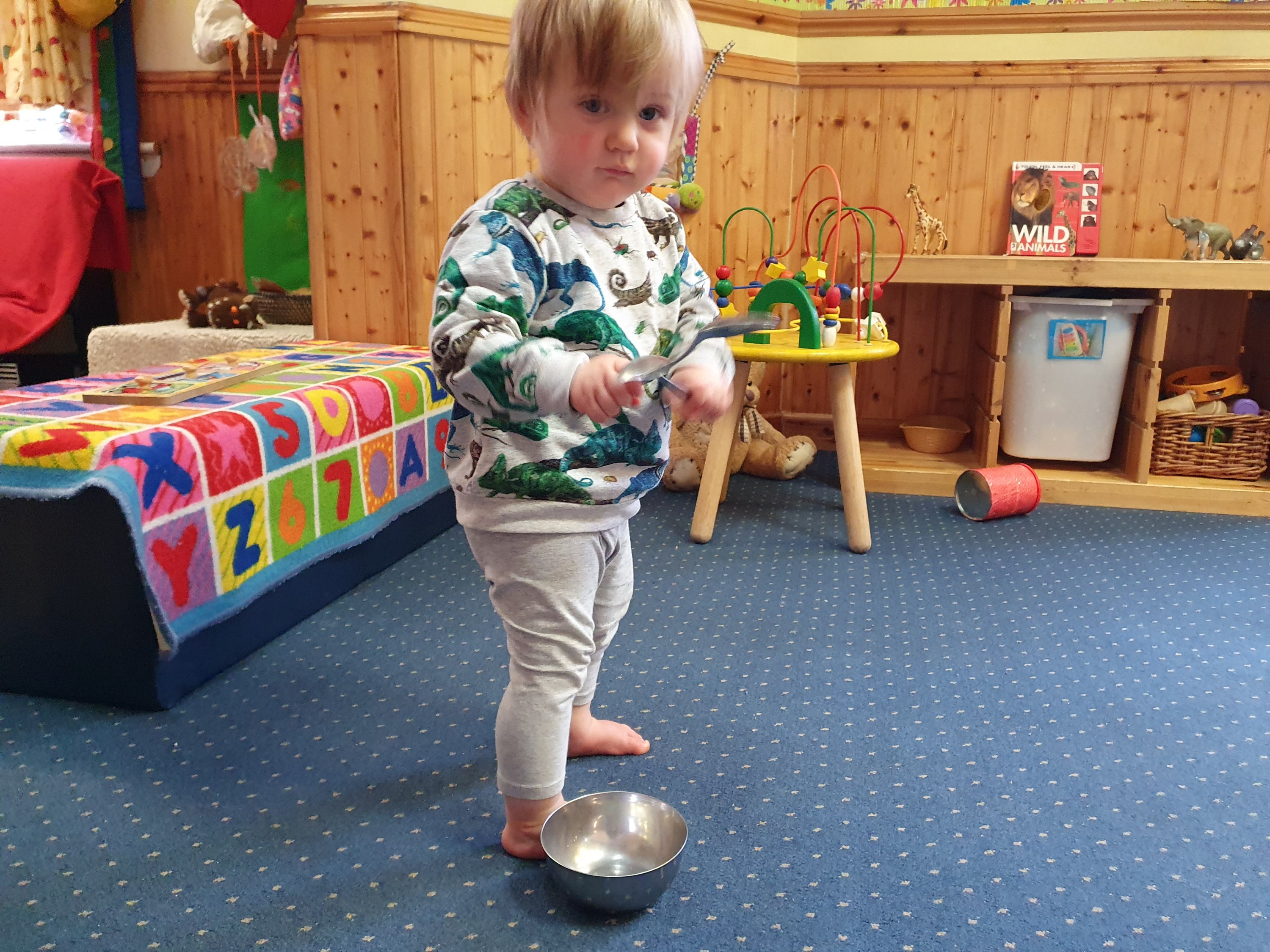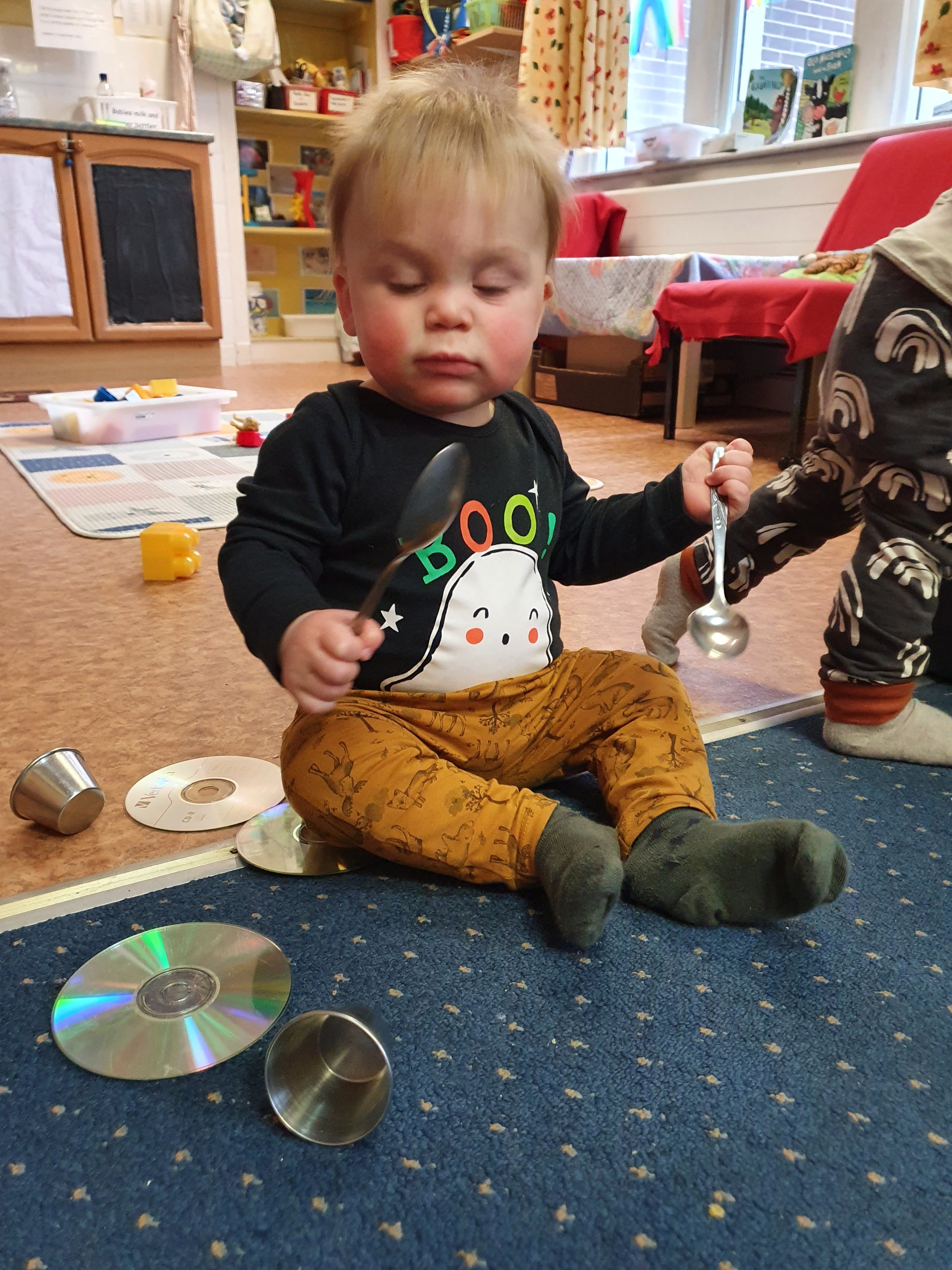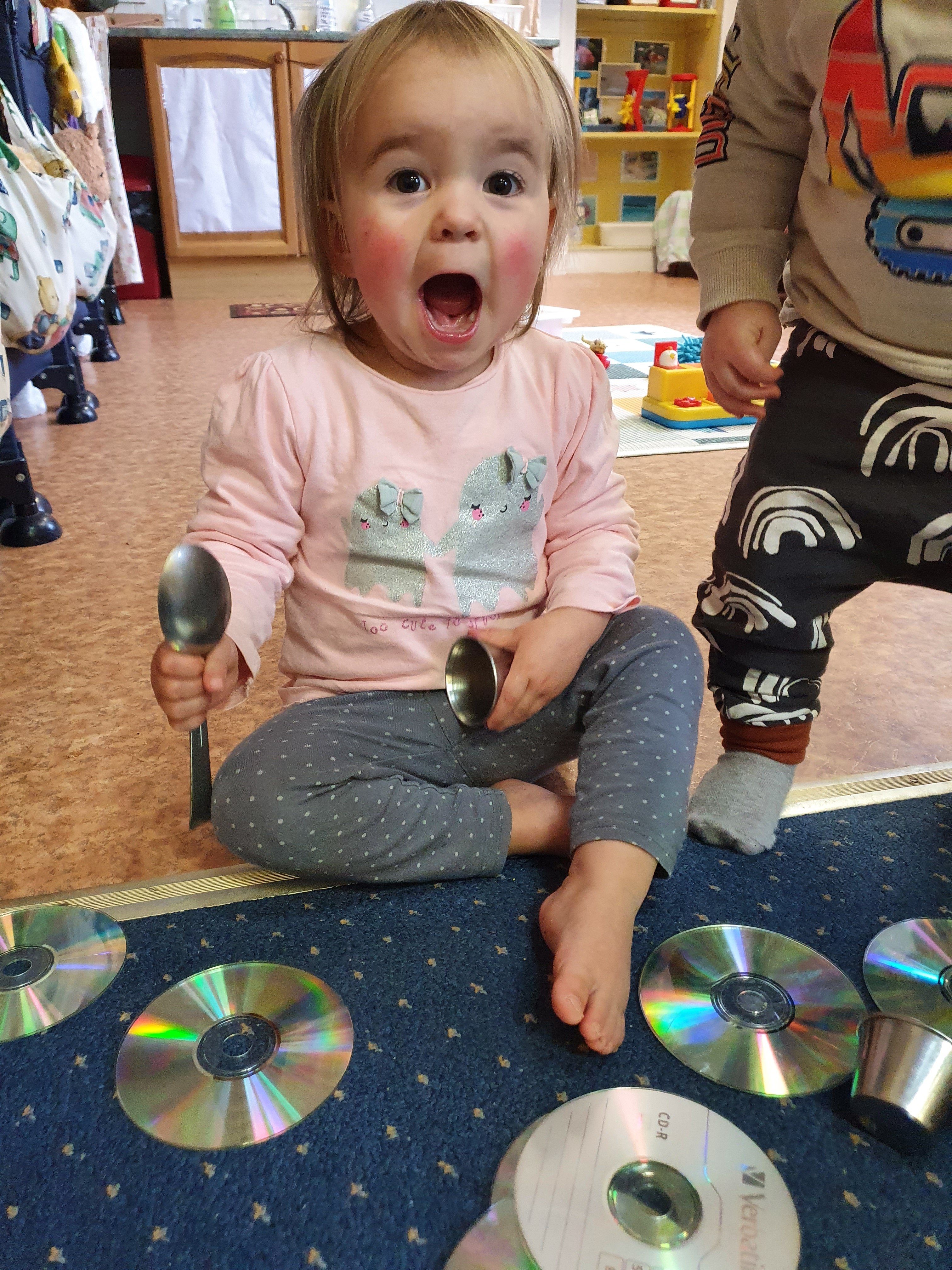 We love shiny metals and especially making loud noises with the spoons and tins
