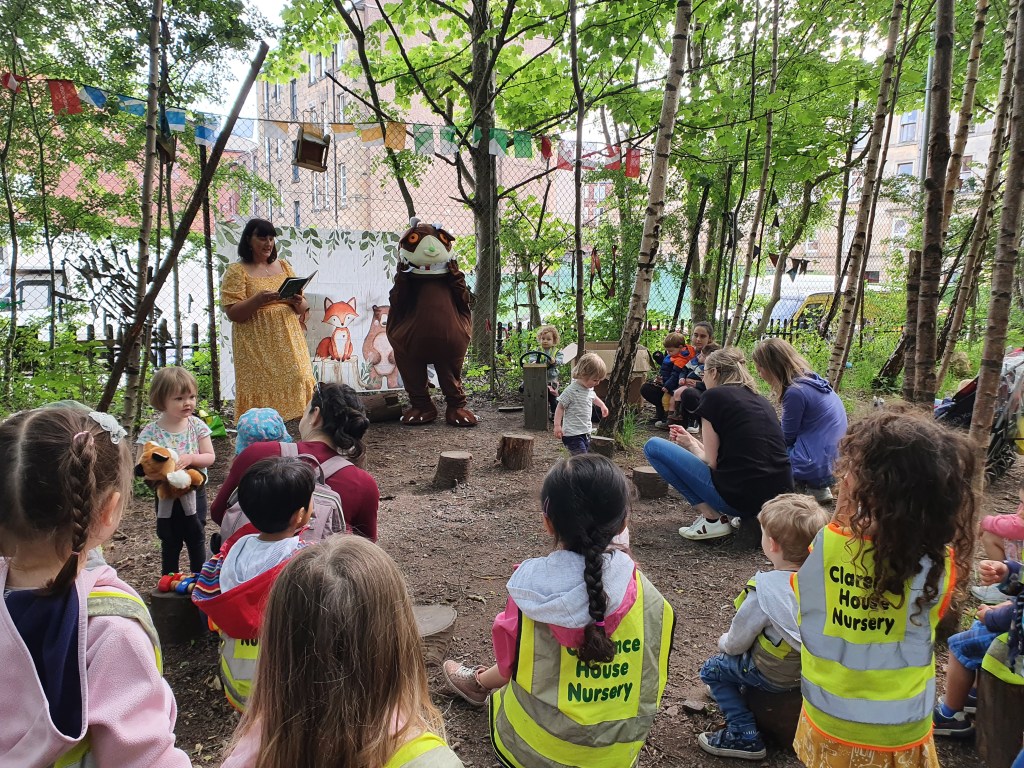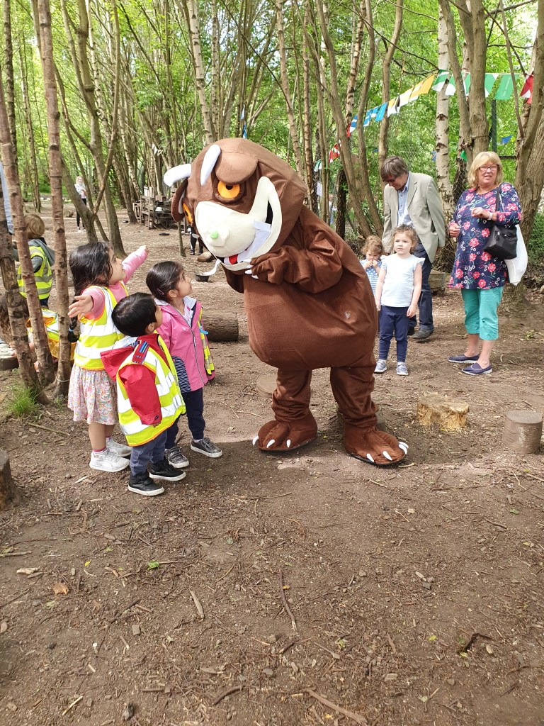 Today in the woods we met the gruffalo and had a lovely story, dance and a play with him. It was a real treat to see one of our favourite storybook characters come to life and interact with us.