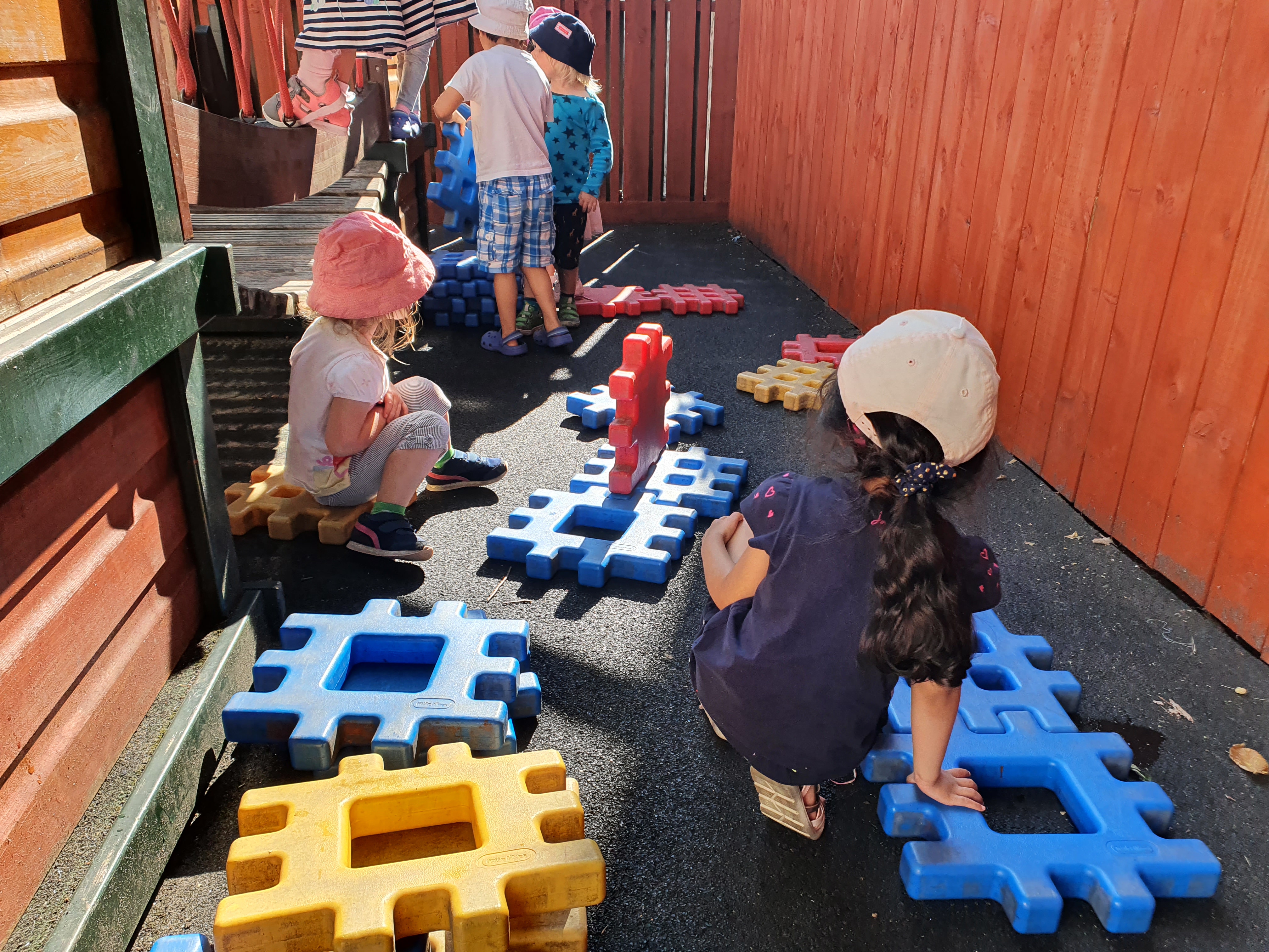 Lots of teamwork going on here as the children work together to build a castle around the climbing frame