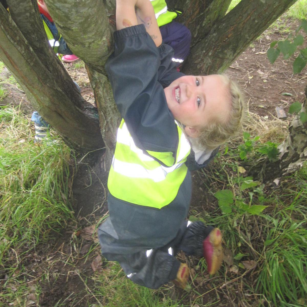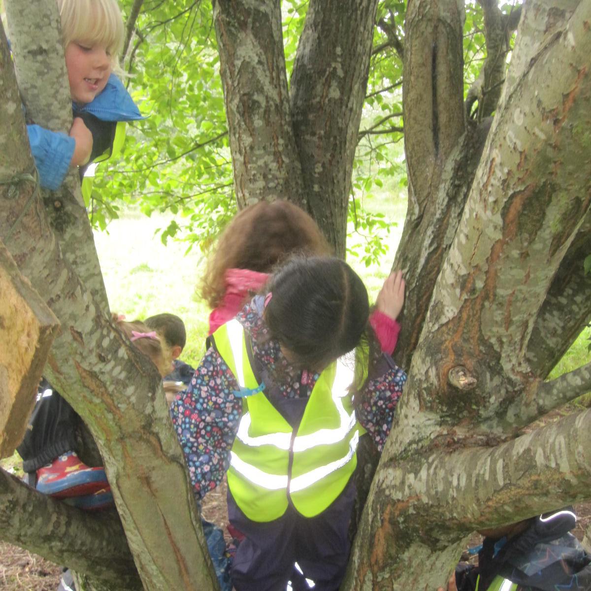 We are learning to have fun and be safe while engaging in risky play. Climbing trees is a great way to use all the muscles in our bodies as we pull ourselves up onto branches and negotiate around the bends. This helps us to feel more connected to nature as we explore in the meadows.