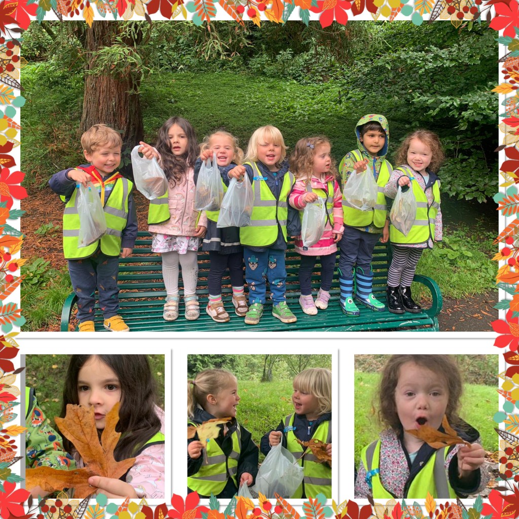 The plan involved looking for fallen leaves with different textures. They would be good for painting and printing. This was so much fun and the children were super excited coming back to nursery to show what they had found.
