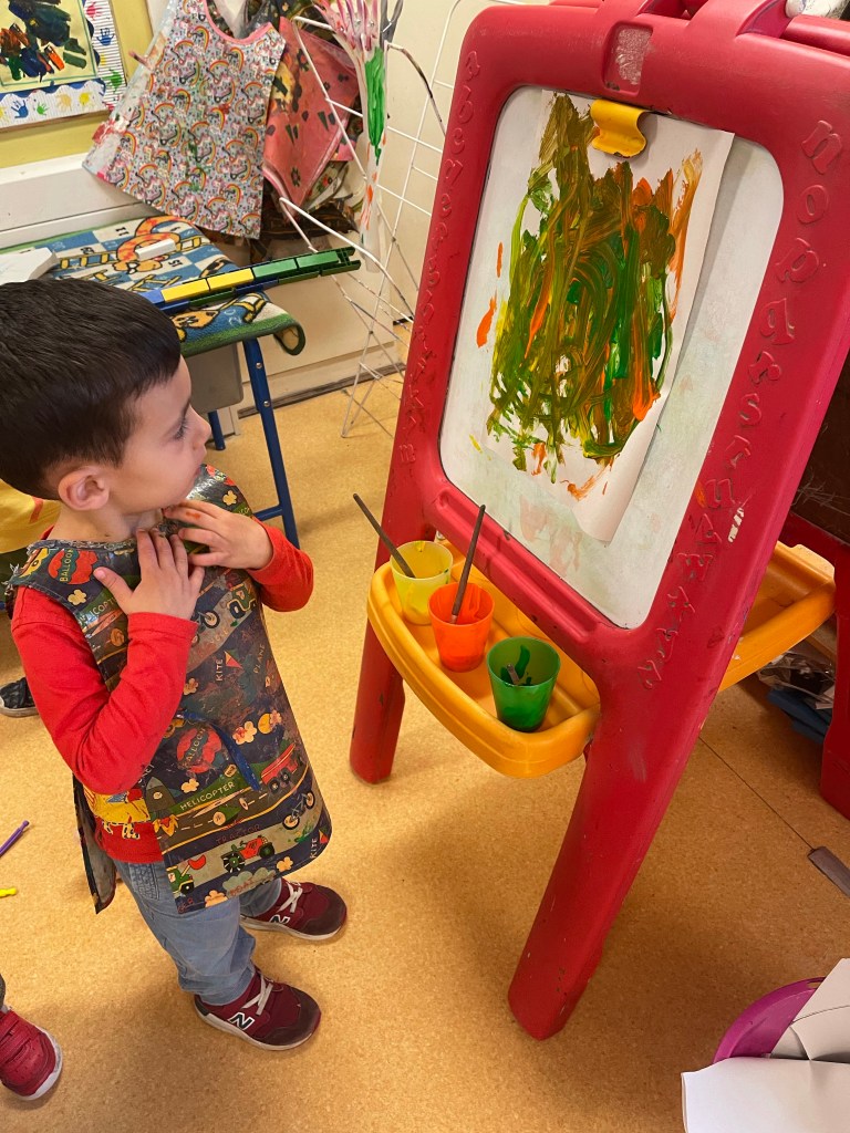 This wee one was delighted with his finished painting and very pleased that we asked if we could take a photo of it.