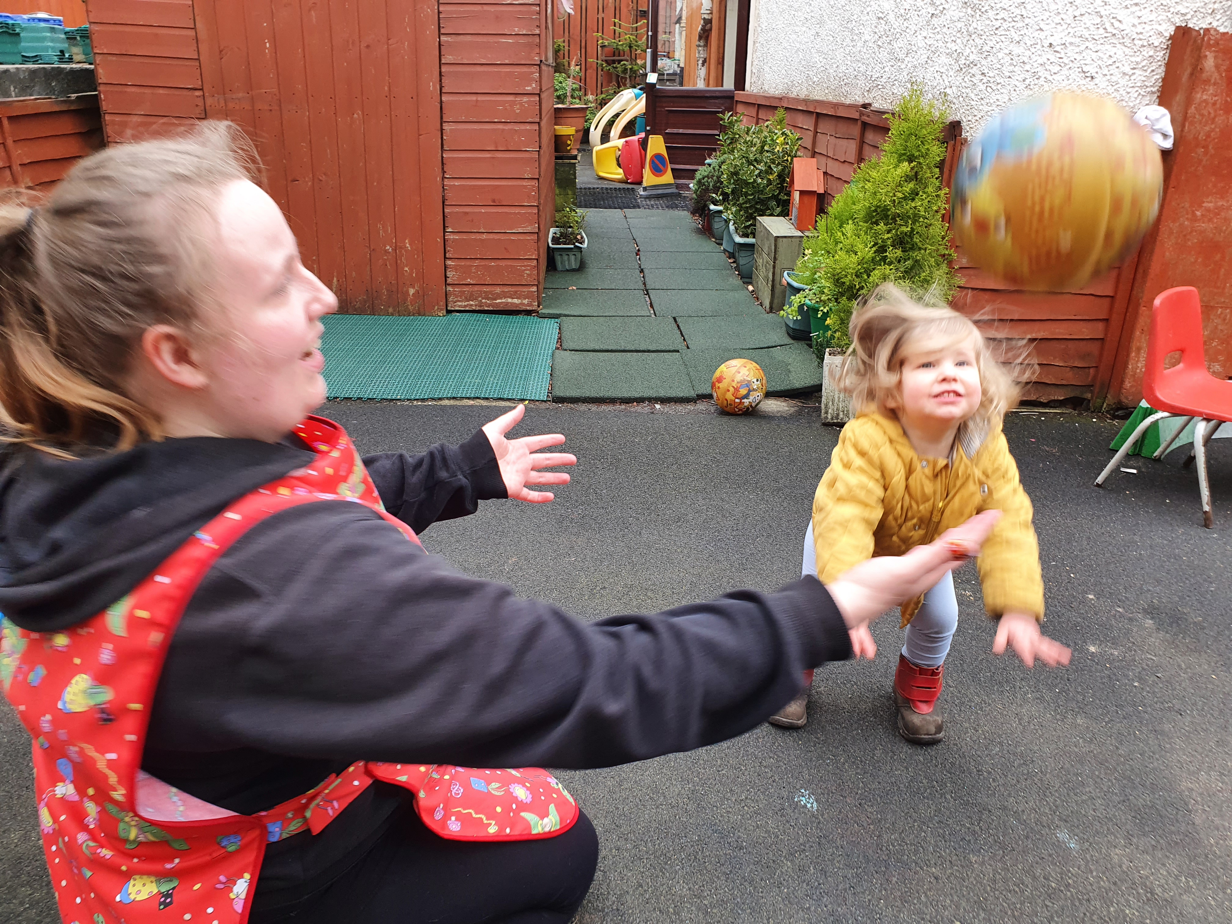 Today our rainbows practiced throwing and catching