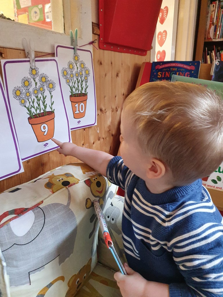 Our new spring number line brings a renewed interest in numbers, this clever one can identify all the numbers up to 10 and count far beyond. 22 was a good number today!