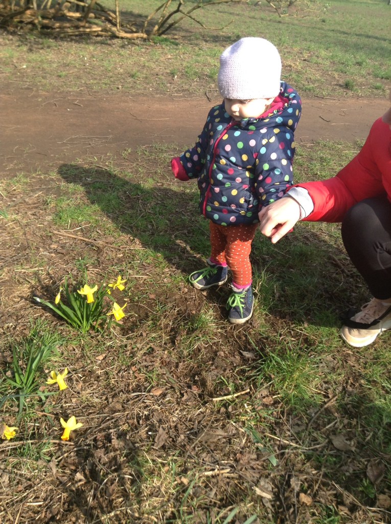 It’s lovely to be out in the children’s wood, lots of lovely daffodils popping up for us to enjoy
