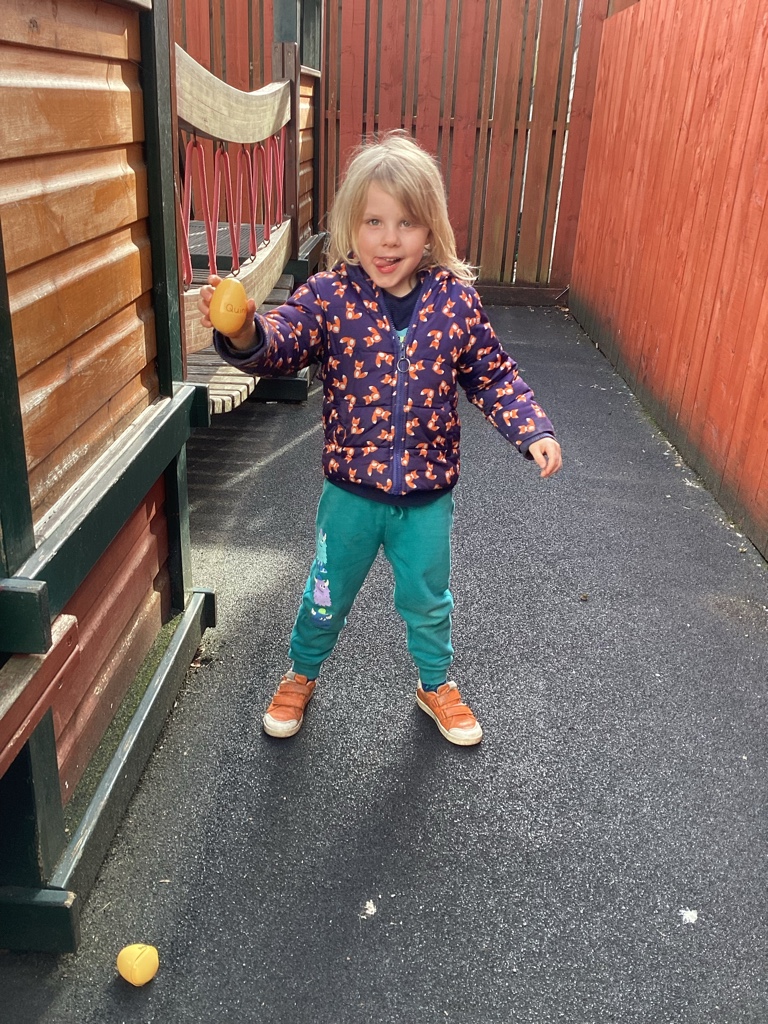 We had a lovely easter egg hunt in the garden, these wee chicks had our names written on them which helped develop our awareness of familiar letters whilst having fun, tasty treats inside for us too π
