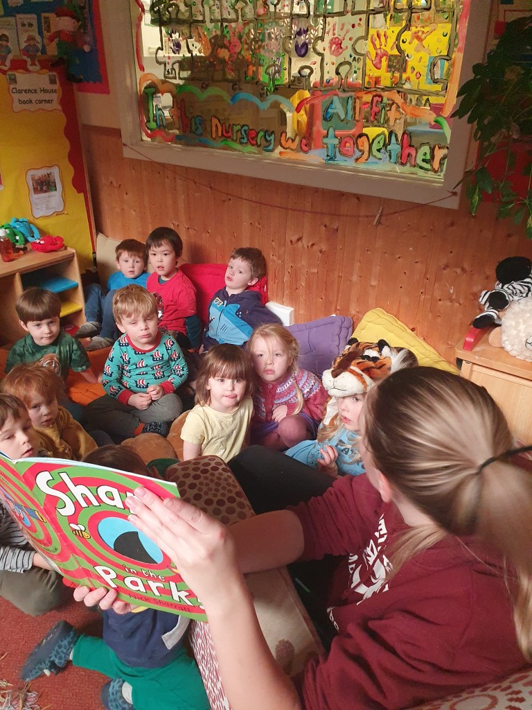 Shark in the Park gives us the opportunity to learn about words that rhyme. Rhiannon is very good at reading stories and knows exactly when to pause the story to let us fill in the gaps