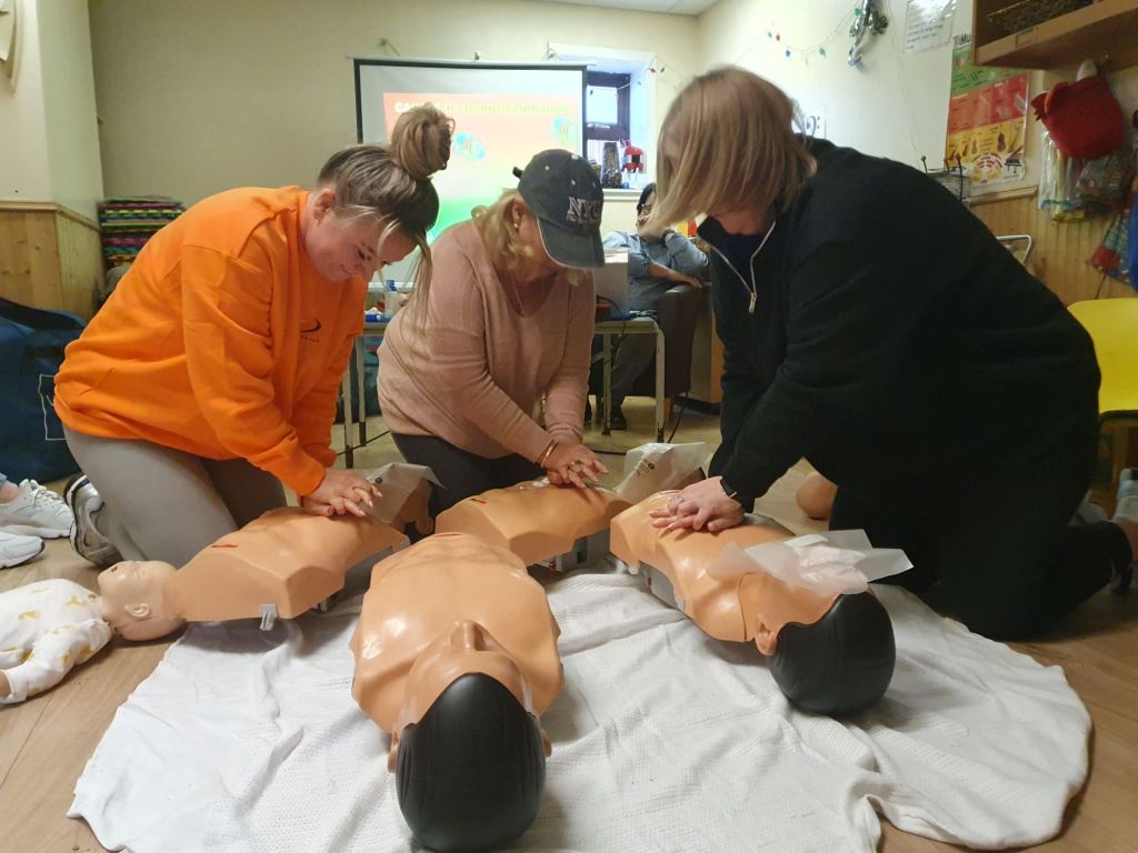 Every 3 years our staff team attend first aid training. This is essential for those who already hold the qualification to refresh their skills and for new members of our team to learn about the basic principles of 1st aid. Our whole team are now qualified in Paediatric and Adult Emergency 1st aid and AED