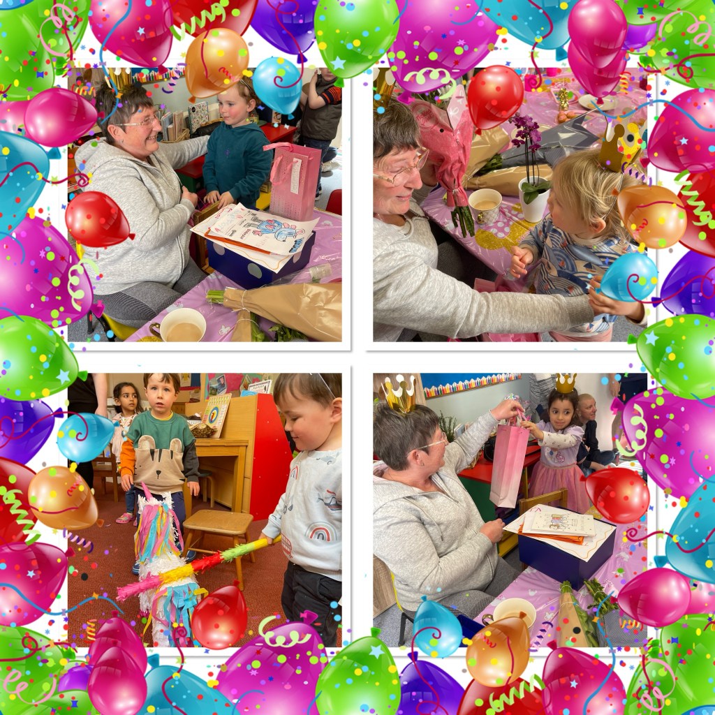 This was our last hurrah for Margo and it was a good one! We gave her a good send off with lots of presents from staff, children and families. We enjoyed our pink cakes and some of us tried a wee cup of tea!