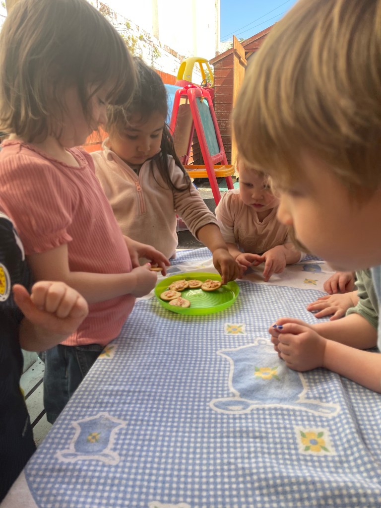 So today we tasted cooked salmon on crackers. This was very successful and lots of “I like” comments. We hope to introduce salmon as part of our meal plan.