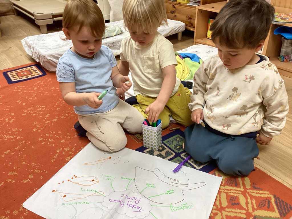 These three 2 year olds are helping plan a teddy bear picnic for the Rainbow Group 🌈