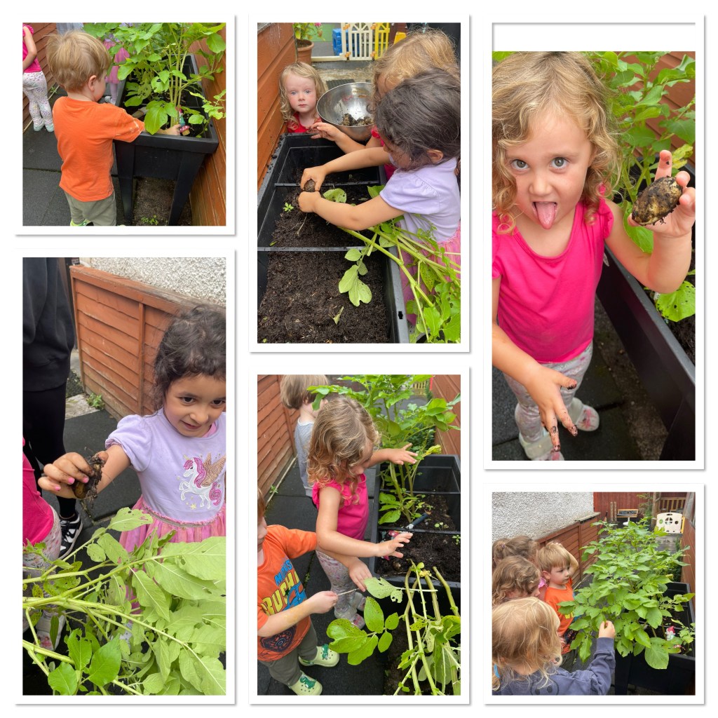 This is the result of the 3 potatoes we left to root, then plant. It was a messy job pulling the potatoes plants out but what a surprise we got when we saw so many new potatoes! Tomorrow we will wash the potatoes, cook them, then eat them. Yum yum .