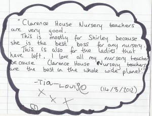 Tia-Louise, who had her last day at nursery on Friday 10th August 2012