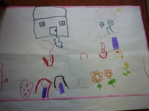 MY MUMMY TOOK ME TO SEE HAIRY COWS. THEY WERE IN A FIELD. THEY WERE EATING GRASS. THEY HAD BIG HORNS. (SANDY WISHART AGE 2 LOOKING AT A BOOK ABOUT SCOTLAND DURING SCOTTISH WEEK)