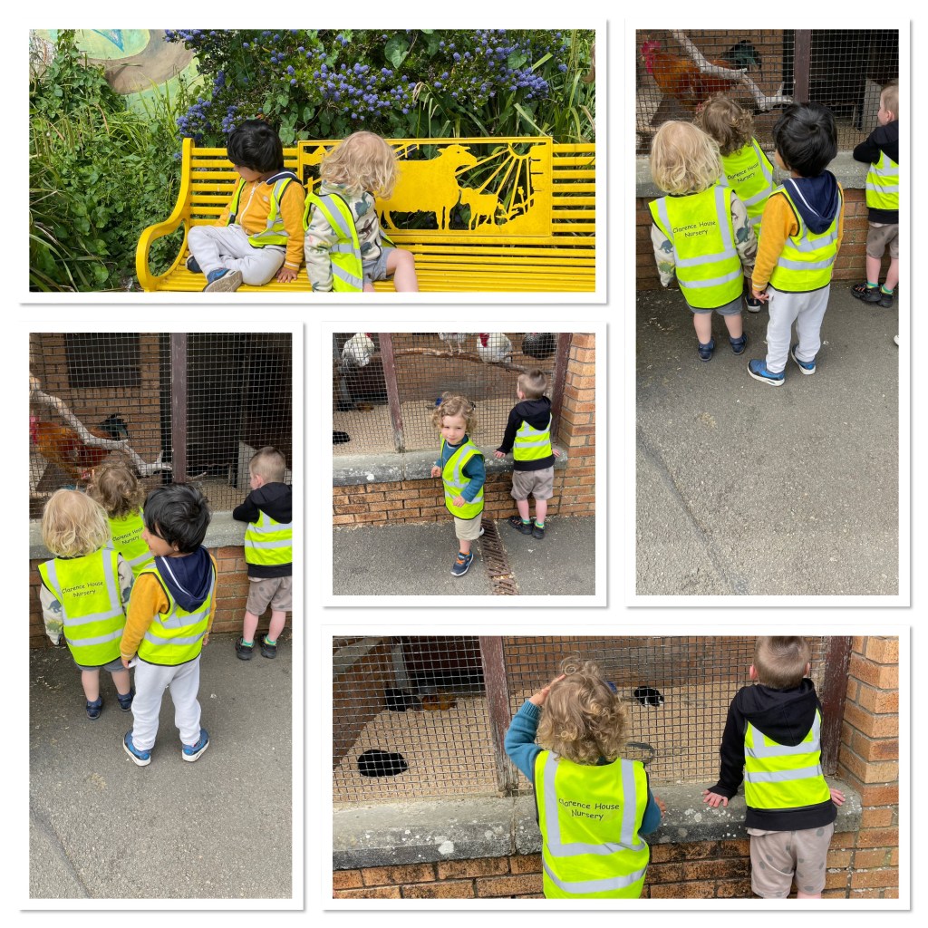 Today we took some of the younger children to a farm park. We spent 45 minutes walking around looking at the horses, alpacas, hens, cockerals and ducks. We also saw some hatchlings and a magnificent peacock. We had a wee picnic later then came back to nursery.